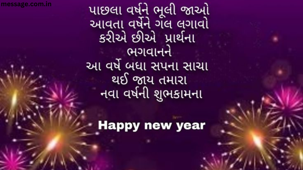 | 🥳 On the occasion of Gujarati New Year, I am sending you 🎊 12 months full of happiness, 😊 52 weeks of smiles, 🎉 365 days of joy…. Have a great year ahead….. Happy New Year. 🎉 |