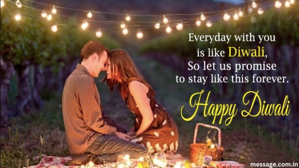 Romantic messages for Diwali might include expressions of love and appreciation, such as wishing for joy and warmth in your relationship and celebrating the festival together.