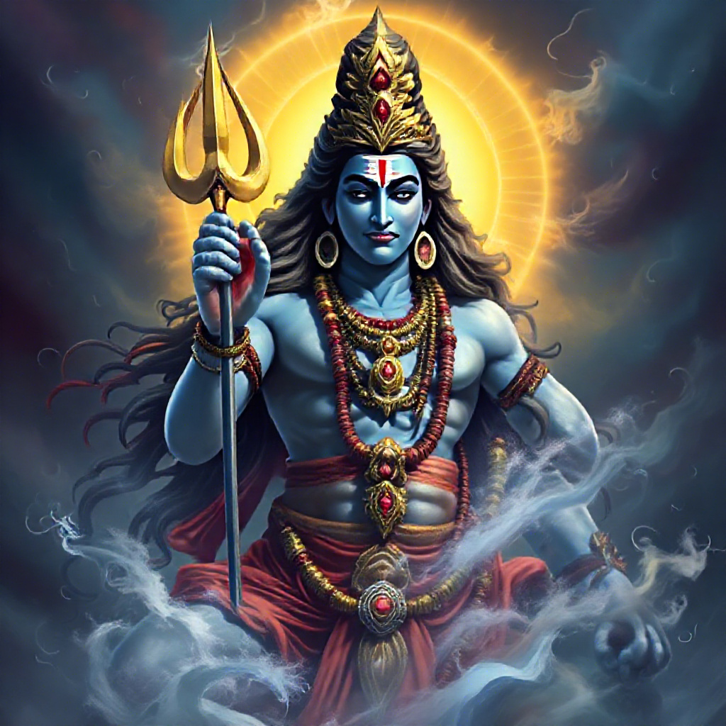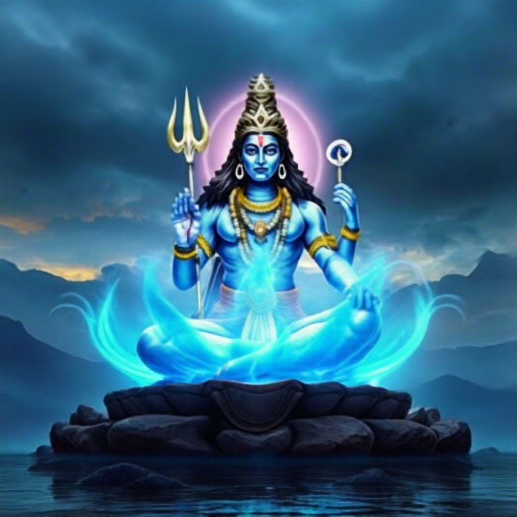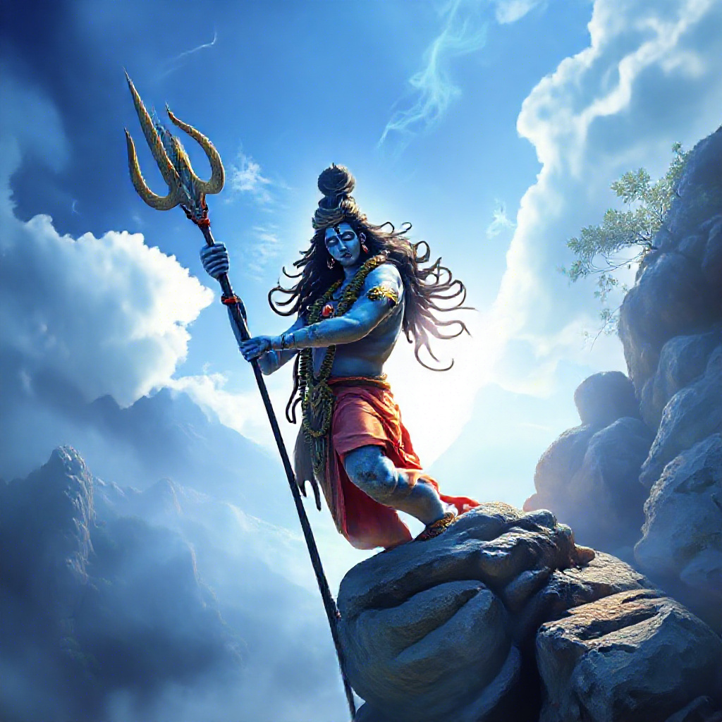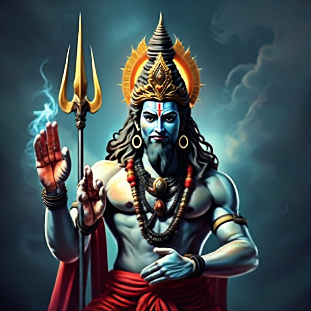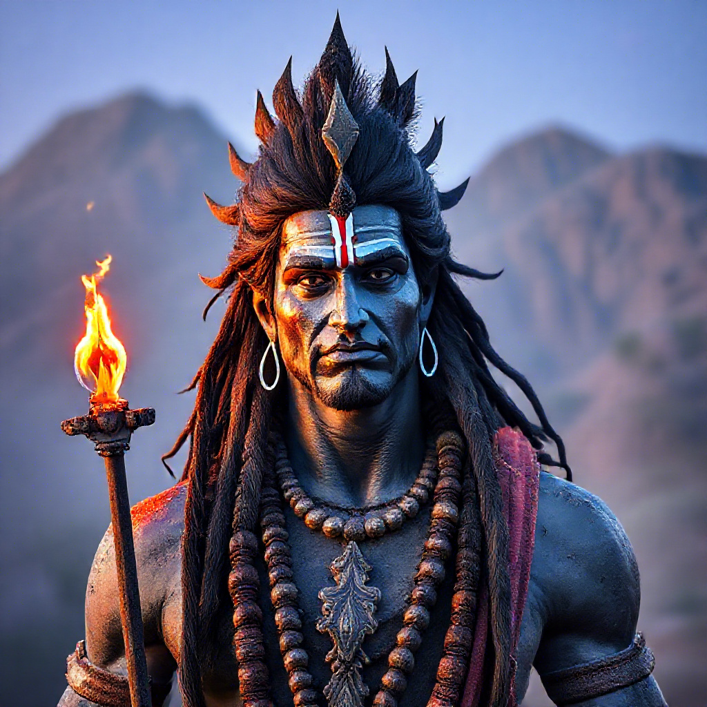 Mahakal represents Lord Shiva’s role as the destroyer of time and protector against evil, often portrayed in more intense, dynamic images.